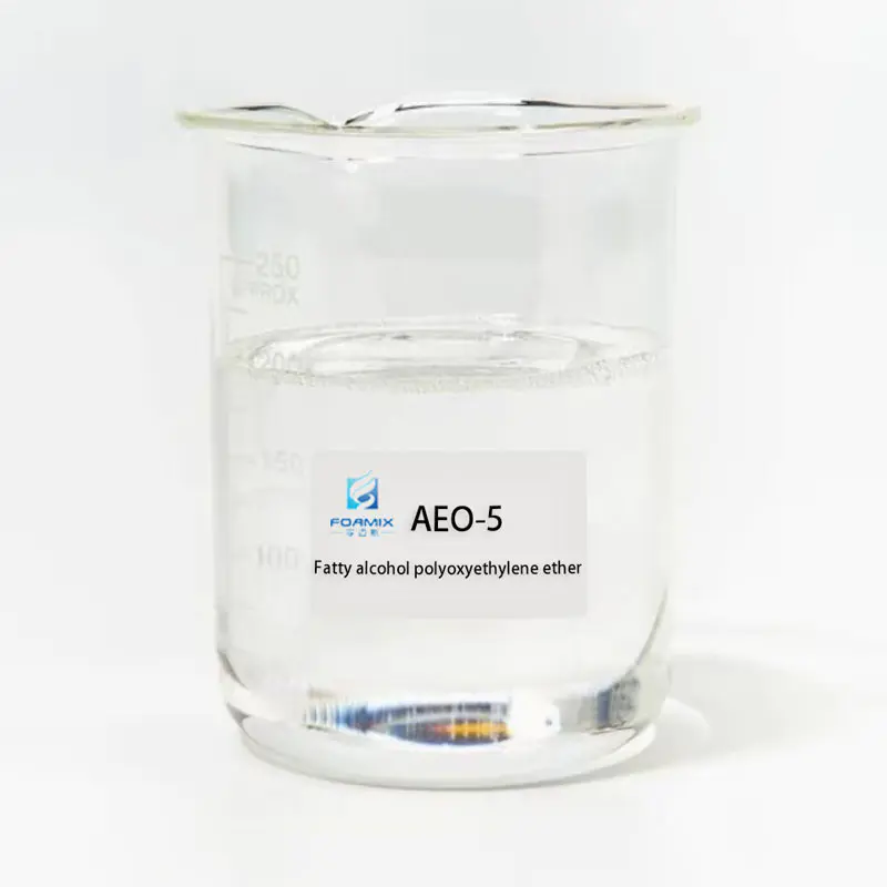 Was daaglikse chemikalieë: AEO-5 het uitstekende emulgering, skuim- en ontsmetting vermoëns. Dit is die belangrikste aktiewe bestanddeel in produkte soos handseep, wasmiddel, stortgel, waspoeier, skoonmaakmiddel en metaalskoonmaakmiddel.